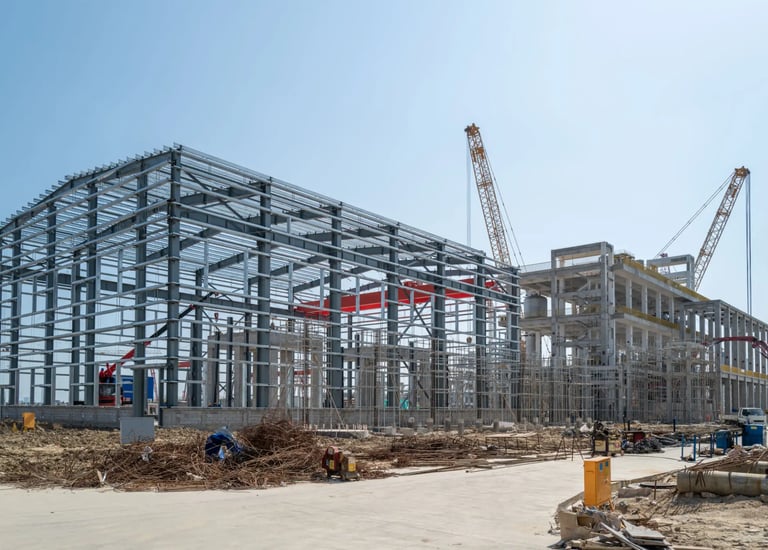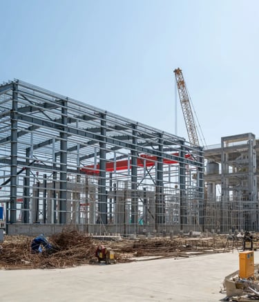 Full engineering for industrial facilities such as warehouses, workshops, and service/maintenance buildings.